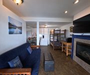 Example Motel Unit – 1 bedroom Deluxe unit sleeps 4 to 6 people. This unit has a queen bed in the bedroom, and a futon and bunk beds in the living area. It is on the water level. Click images just below for larger views.